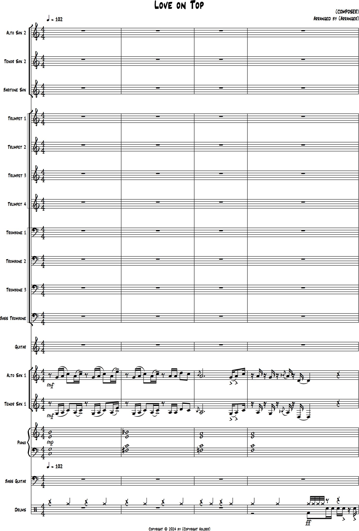Love On Top This arrangement of 'Love of Top' sung by Beyonce is set up as a dual for two Saxophones, Alto and Tenor. However, this piece can be tranposed to suite other instruments, if needed. Originally performed at 'The Little Theatre' Leicester, England, February 2025 with Ed Barker (formerly Saxophonist for the late George Michael) and the Leicester Grammar School Big Band.