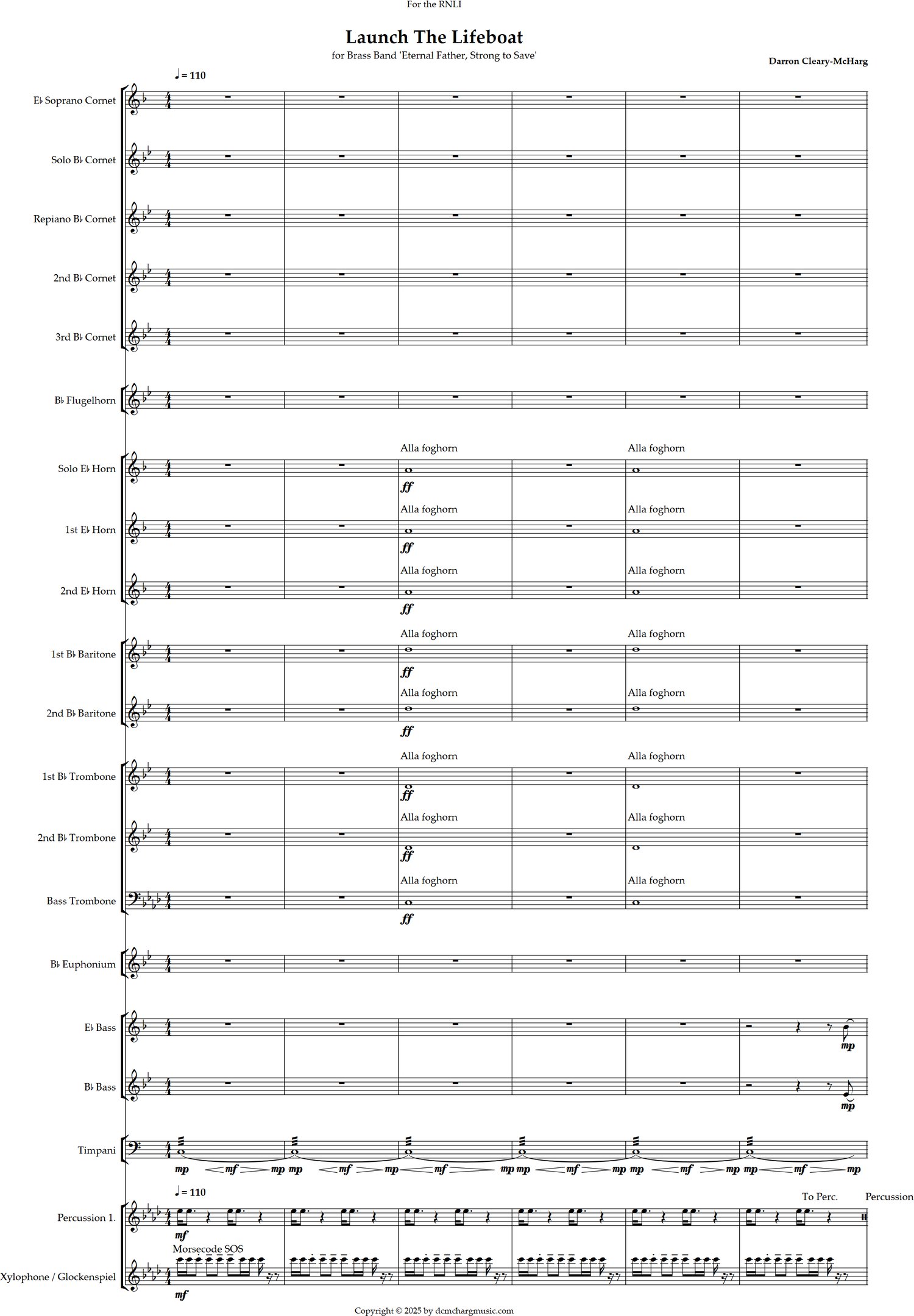 The music starts with the ship bell sounding and the morse code signal being sent out for help and the fog horns blasting. The storm comes into action as the ship is tossed in the waves, as the RNLI boat comes out to sea to rescue the passengers. The piece then moves into the famous British hymn; Eternal Father, Strong to Save. After the storm resides and the sea calms, the passengers are taken aboard and sail back to the safety of land.